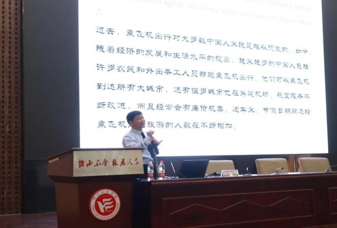 唐忠顺从英语学习方法、英语四六级的重要性、大纲要求、题型结构、练习技巧等方面展开,围绕作文、听力、阅读和翻译四种题型,详细地介绍了应试技巧。他表示,学习英语有四大法宝,分别是兴趣、方法、信心和效率,掌握并灵活运用这四大法宝,是学好英语的关键,为同学们指明了学习英语的方向。他就大学英语四六级考试为同学们提出了四个方面的建议:第一,语音标准,要掌握好每个单词的发音;第二,系统的语法知识,学习语法知识是读懂句子的关键;第三,词汇量一定要充足;第四,拓宽知识面,注意知识的积累。唐忠顺的讲座极大地鼓舞了同学们的信心,同学们都认真聆听,准备在接下来的备考中活学活用。