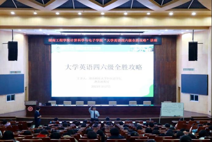邀请湖南科技大学唐忠顺教授在一报告厅作“大学英语四六级全胜攻略”的学术讲座,共400余位参加讲座。
