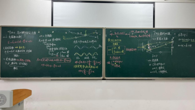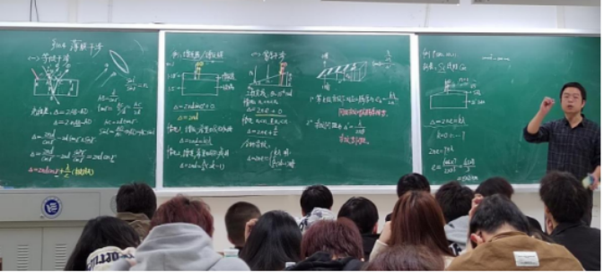 三尺讲台育桃李,一根粉笔写春秋。肖刚的黑板上有共点力作用下的物体平衡,有电磁线交织下的互感现象,也有非单色光源入射时的干涉条纹,各种颜色的粉笔在黑板上生花。在他看来,物理学科的逻辑性很强,板书就是带着学生把这个过程完整走一遍,知识衔接和逻辑转折一目了然。“他在黑板上画的图与他备课教案上的图一模一样,他粉笔字钢笔字写得都很漂亮,讲的内容通俗易懂,也很精炼。”“肖老师的教学准备非常充分,注重因材施教,教学成效显著。”肖刚多次获得学校教学督导的点名表扬。