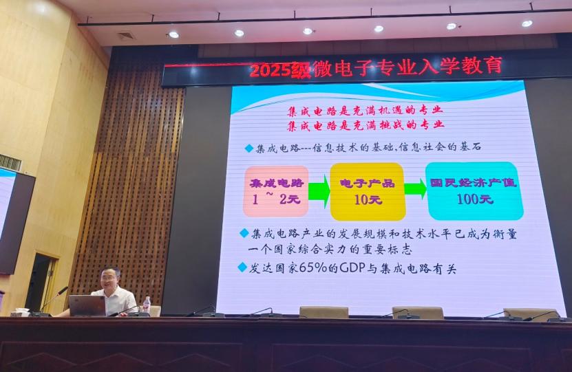 本次讲座是学院面向2025级微电子专业新生开展的入学教育系列活动第二讲。同学们全程凝神聆听,反响热烈。讲座内容翔实、讲解深入浅出,不仅增强了学生对微电子专业的认同感和学习兴趣,更激发了他们科技报国的家国情怀,为同学们未来的专业学习与职业发展奠定了坚实的思想基础。