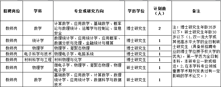 (五)急需教学人员(优秀硕士):国家一流大学、一流学科或其他高水平大学的全日制硕士研究生 (具备所招聘专业的博士学位授予权大学的优先),第一学历为全日制本科(不含专升本、独立学院),本硕专业一致或相近;在本学科专业领域重要学术期刊发表过有一定影响的学术论文。