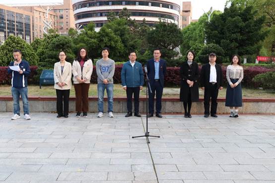 在主校区知行广场以“弘扬爱国精神 树立报国之志”为主题举行升旗仪式。学院院长邓永和、党总支书记胡武平、副院长陈桥、田智鲲、学办老师及学生党员干部、2022级全体学生参加,党总支副书记李欣主持升旗仪式。
