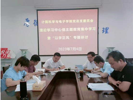 党总支部理论学习中心组在G207会议室开展主题教育集中学习暨“以学正风”专题研讨。党总支书记胡武平主持,党总支部理论学习中心组成员参加学习和研讨。