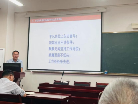 党总支部副书记,院长邓永和给全院教工党员讲“老党员的故事”。