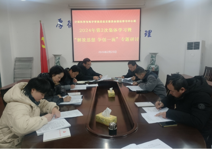 党总支部理论学习中心组开展2024年第2次集中学习暨“解放思想争创一流”专题研讨。党总支书记胡武平主持,党总支部理论学习中心组成员参加学习和研讨。