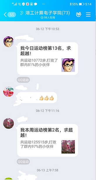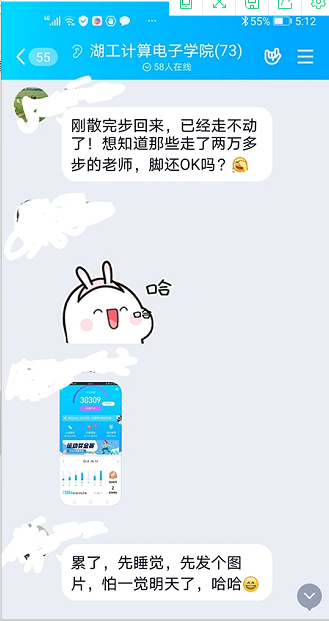 教职工们参加分工会举办的线上QQ运动休闲走活动的骄人成绩。一组组数字,让人隔着屏幕都能感受老师们的热情及坚持。