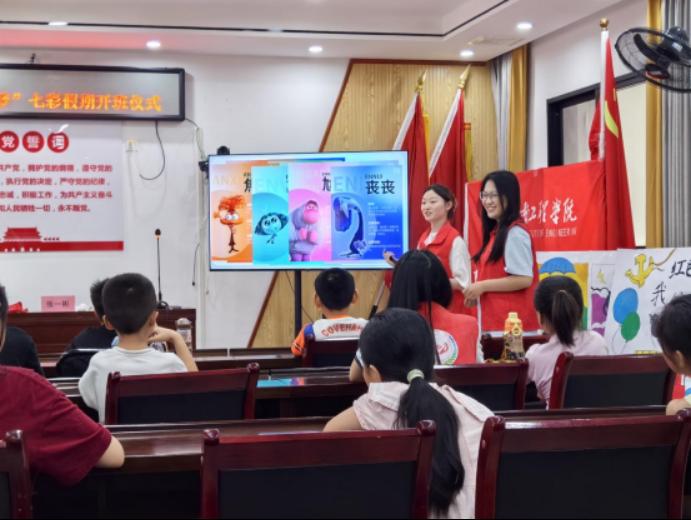 “大手牵小手 共筑强国梦”中华文化传承社会实践团的成员。 “七彩假期”暑期成长陪伴辅导活动围绕思想引领、身心健康、生态环保、交通安全等进行,积极开展党史我来讲、多彩音乐课等课堂活动,创新教育教学方法,开展沉浸式教学模式,通过丰富多彩的活动充实当地儿童的假期生活,助力孩子们的健康成长。