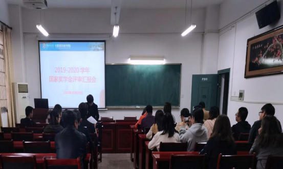 于主教学楼F205举行了2019-2020学年国家奖学金评审答辩会。学院社会奖助学金评审委员会的老师和学生代表担任本次答辩会的评委。