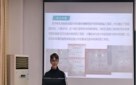 学院8名学生经个人申报、班级评议、学院审核后入围了此次答辩会。参评学生按照顺序依次进行自我介绍,从学习成绩、科研竞赛、文体竞赛、社会实践等多个方面进行陈述,汇报了各自在学习、生活、工作等方面的成长与感悟。在评委提问环节,评委们根据答辩学生的个人陈述和申报材料进行提问,进一步了解学生各方面的表现情况。
