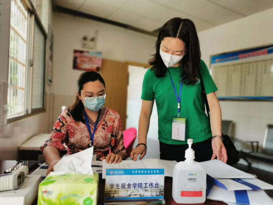 迎来了2016级返校学生,学院党总支副书记陈亚琼带领辅导员深入学生宿舍,与返校学生进行亲切交流,了解学生思想动态。学生返校后,为关注学生身心健康和学习情况,学院在亲民3、4栋宿舍设立了值班服务台,值班人员由院领导、辅导员和班主任组成,其中学院领导带头承担了一半的宿舍值班任务。