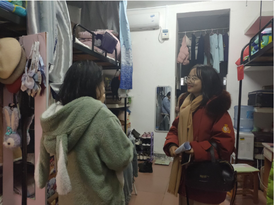 进行了学生宿舍防火安全及晚归情况排查工作,由党总支副书记陈亚琼、学办主任张利芝、学生辅导员李小青、团总支书记杨俐分别带领学院生活纪检部干部干事对学生寝室逐间走访进行安全大排查。