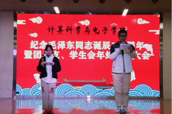 在主校区学生活动中心举行“纪念毛泽东同志诞辰127周年暨团总支、学生会年终总结大会”。党总支副书记陈亚琼、团总支书记杨俐以及2019年以及2020年团总支、学生会所有干部干事参加了本次活动。