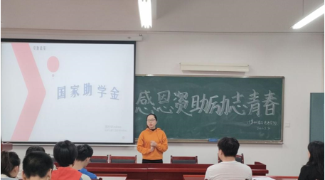 徐文娟老师深入解读了国家资助政策。她强调受助学生必须秉承诚信为本原则,不得隐瞒家庭经济实际情况,合理使用助学金。同时,她强调家境困难不该成为受助学子自卑的因素,寒门逆袭的例子数不胜数,同学们要自信、坦荡、积极、乐观。徐文娟向在场学生提出三问:“当我们接过振兴中华的接力棒时,我们该怎样走好现在的每一步?我们能为社会、为国家创造什么?我们能给后人留下什么?”她希望受助学生能心怀感恩,励志自强、积极进取,以优异的成绩回报学校、社会和国家!