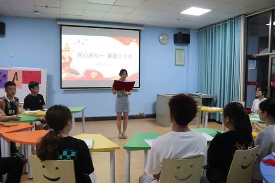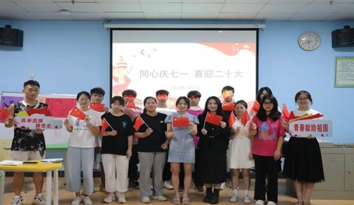 征途漫漫从头越,奋楫扬帆向未来。为庆祝中国共产党成立101周年,不断提升共青团工作的引领力、组织力、服务力。7月1日下午,麻豆原创 在新校区心理团体辅导活动中心举办“同心庆七一 喜迎二十大”活动。学院团总支书记杨俐组织团员青年为党庆生。