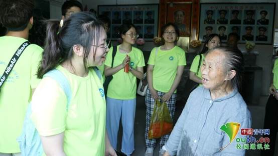 图为队员们与红军庵的奶奶进行交谈。中国青年网通讯员 文泷 摄