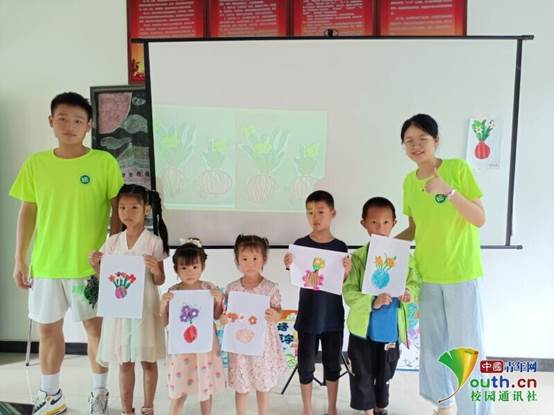 图为队员教孩子们上完手工课的合影。中国青年网通讯员 聂语萌 摄