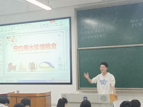 在活动上,各班班长向我们讲述了此次主题班会的主要内容,通过多媒体,以文字和短视频的形式向大家展示,并和大家分享了此次主题班会的意义及内涵,告诫同学们要珍惜粮食,珍惜我们不可或缺的水资源,同时充分了解宪法知识,提高同学们在法律方面的综合素养,切实加强大学生文明礼仪的养成。