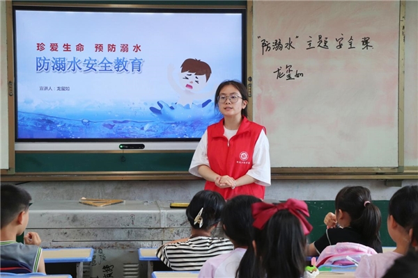 保障青少年儿童健康成长最首要就是不断加强对青少年儿童的安全教育工作。为增强青少年的安全知识教育和提高自我防范的意识,在课堂上,实践团成员开展了“妙绘中华 筑梦童心”主题绘画课、“防电信诈骗”主题宣讲、“垃圾分类”演示、“消防安全”情景剧、“防溺水”安全教育主题课、“未成年人保护法”知识宣讲等主题活动,新奇的体验让孩子们惊奇不已,现场气氛热烈高涨。“我们很喜欢哥哥姐姐给我们上课,他们就像我们的爸爸妈妈一样,能够教我们很多安全知识。”中路铺中学学生黄晨曦说。