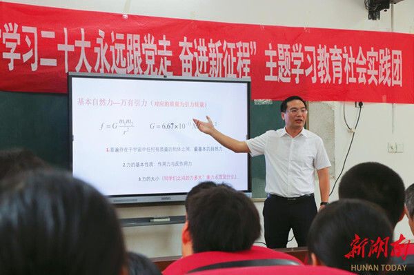 邓永和教授为中路铺中学学生讲述了一堂《万有引力》科普课,在孩子们的心中播撒科学的种子。通过设置问题情境,引发认知冲突,循序渐进,深入浅出,他带领同学们感受科学的神奇和奥秘,激发同学们的想象力,激励同学们崇尚科学,传承老一辈科学家追求真理、创新奉献、胸怀国家的精神。