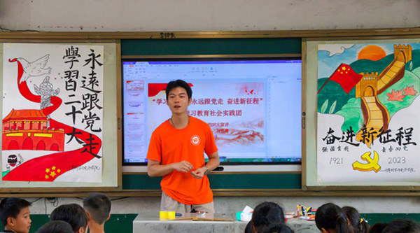 图为实践团成员给同学们讲授“学习二十大永远跟党走奋进新征程”主题学习教育课。龚艳星 摄