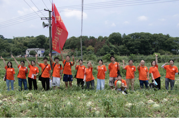 图为实践团成员参观西瓜种植基地的合影。李韩辉 摄