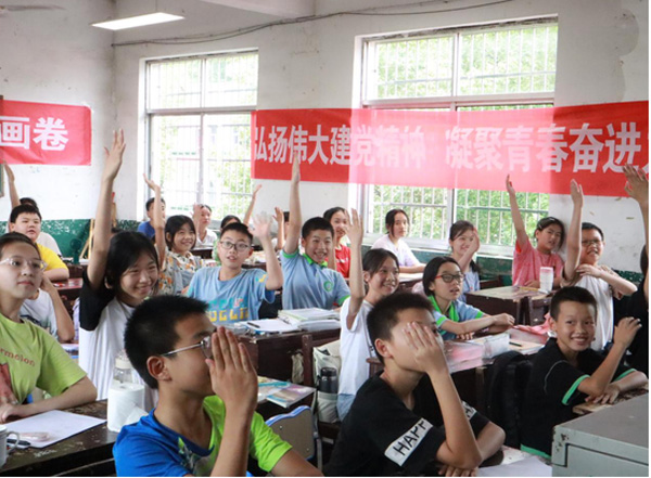“好想成为像哥哥姐姐这样的宣讲成员......”在小朋友的心目中,实践团成员既是他们的小老师,也是他们学习的榜样。中路铺中学的孩子们在听完实践团成员带来的二十大精神宣讲后,清澈的眼神中表露出自豪的神色,坚定的声音回荡在教室里,他们也渴望在未来和实践团成员一样传承红色基因,讲好红色故事。实践团成员还为青少年们开展了红色故事、绘画、科学科普等多样化的课堂,打通党史学习教育入脑入心的最后一公里,营造浓厚的红色文化氛围,让青少年们潜移默化中得到熏陶和感染,更好地引领青少年学生自觉传承红色基因,赓续革命精神,争做时代新人。