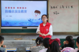 图为实践团成员给留守儿童讲述防溺水的安全知识。李韩辉 摄
