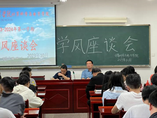 最后,邓永和对座谈会进行了总结,他强调学风座谈会充分调动了学生的学习积极性,学院也将在今后的教学安排中进行调整与优化,使学院的学风建设更上一层楼。本次座谈会旨在搭建师生交流平台,广泛听取学生对于学院教学管理的意见和建议,促进学院师生之间的交流,激发学生学习热情,提升学院专业办学水平。学生提出的建议有利于学院今后学风工作的开展,为改善学院学风建设打下了坚实基础。