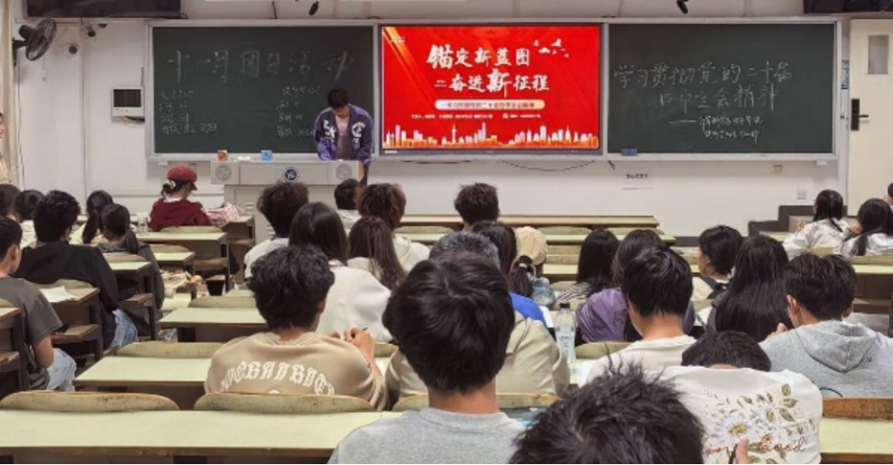 面向2024级、2025级学生在主教学楼B栋204开展了以“深入学习贯彻党的二十届四中全会”为主题的宣讲活动,统计2502班舒子杰同学主讲,80余名学生参与此次活动。