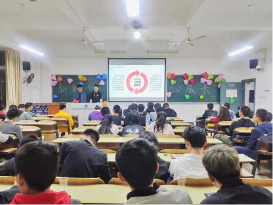 首先,心理委员对“新时代、心成长”的主题内容进行宣讲,让同学们了解当代大学生的心理健康状况和比较常见的心理问题。然后,班级观看了心理微电影、视频以及通过各种小游戏来进行互动交流,现场气氛热烈,尤其是当同学们将自己的心路历程与故事分享给大家时,将活动推向高潮。接着,心理委员详细地介绍了学校心理咨询室地址、咨询预约电话、咨询值班安排、“心理健康教育与咨询中心”的微信公众号和“学生工作处”的网址,要求同学们关注微信公众号。最后,在大一班级,心理委员还朗读了“心理健康教育与咨询中心致新生的一封信”。