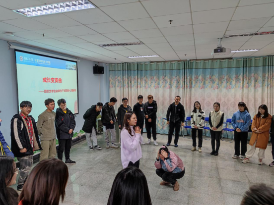 活动在充满欢乐的氛围中拉开序幕,轻松有趣的“破冰之旅——无家可归”和增进彼此了解的“和我一样”热身活动,打破了团体成员的拘谨,开始轻松进入活动。本次团辅主题为成长变奏曲,通过“小鸡变凤凰”的现场体验成长的过程。活动过程中,每位成员都积极参与,全身心投入。现场时不时响起一阵阵欢快的笑声。每个环节,陈亚琼都会请大家分享活动的感受与收获,引导同学们更加清楚的认识到团队的力量以及成长的过程中的痛苦和快乐。团总支学生会组织部部长肖大龙同学在分享自己的游戏感受时,表示自己加深了对伙伴们的了解,同时也享受了这个游戏过程,慢慢领悟到成长过程中的意义。