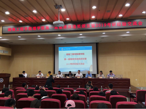 5月30日下午,理学院在图书馆二报告厅举办了第一届继续深造奖颁奖典礼暨2019届考研经验交流会。理学院院长邓永和、党总支书记刘洁纯、副院长杨继明、党总支副书记陈亚琼、办公室主任刘林、学办主任张利芝、信息与计算科学教研室主任曹建新、微电子教研室主任陈桥、学办辅导员及毕业班班主任代表等人出席了本次颁奖典礼,典礼由陈亚琼主持,学院14个班级的学生代表参加了本次活动。