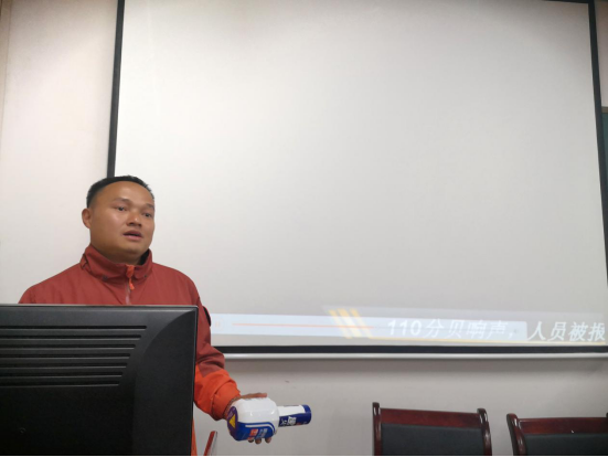 会议伊始,吴德亮通过列举大量生活中的真实案例,指出了生活中存在的许多安全隐患。他说,人们的生活离不开火,但是如果使用不当或者管理不好,就会发生火灾,给人民的生命财产以及国家的建设发展造成巨大损失。吴德亮还介绍了一系列消防工具的使用及其分类,并重点介绍了多功能灭火宝、车载灭火器以及水晶灭火器等新型灭火器。他还以图片的形式介绍了家庭消防器材的配置方法,强调应该在适当的地方放置合适且实用的消防器材。