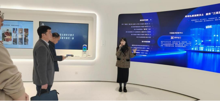陈院长一行在数字马力(长沙)信息技术有限公司总经理李福喜、校园招聘总负责人杨滔、湖南区招聘负责人曾磊等人陪同下参观了公司展览大厅、工作区域,深入了解公司在数字科技、数字支付、数字金融、数字互联等方面的应用和发展情况。