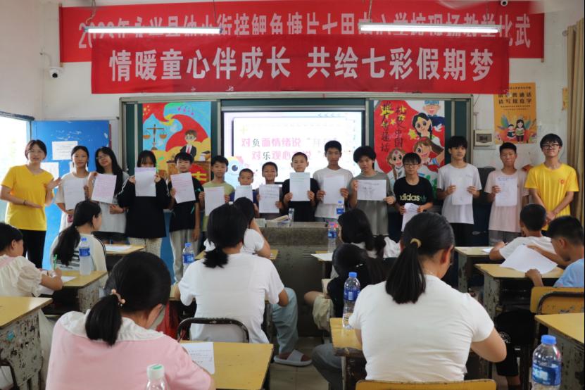 7月10日“星耀七甲・筑梦童行”关爱留守儿童志愿服务团队于永兴县七甲乡中心学校正式开启爱心支教行动,支教对象为七甲乡中心学校小学、初中部共60余名学生。