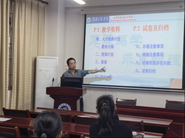 肖刚副教授则重点讲解了教学资料整理规范,详细介绍了教学资料准备、试卷命题、阅卷流程及试卷归档等环节的要求与操作要点。