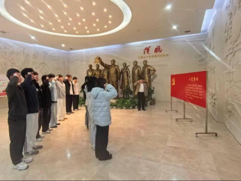 参观结束后,两个党支部在党史馆内联合举行新党员入党宣誓仪式。面对鲜艳的中国共产党党旗,全体党员整齐肃立、高举右拳,在支部书记的带领下庄严宣誓:“我志愿加入中国共产党,拥护党的纲领,遵守党的章程,履行党员义务……”。铿锵有力的誓言在大厅中回荡,表达了每一位党员为党和人民事业奋斗终身的坚定信念。