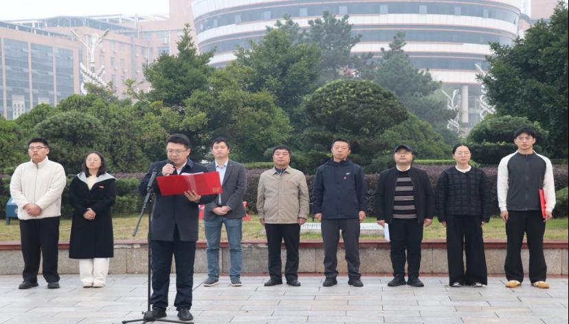 7点,升旗仪式正式启动。国旗护卫队迈着整齐有力的步伐护送五星红旗入场,庄严的国歌声中,全体师生肃立行注目礼,鲜艳的五星红旗冉冉升起。随后,副院长文大东发表讲话,他以湘潭红色热土的革命精神为引,点明青年担当的核心—— 在技术迭代加速、技能易逝的时代,“锲而不舍” 的底层能力与 “敢为人先” 的创新精神,才是应对变化的根本底气。