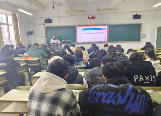 在新校区A507教室举办“青春敢闯敢创 政策保驾护航”主题宣讲活动。学院创新创业专干杨俐担任主讲,学院部分大一、大二共80余名学生到场参与学习。