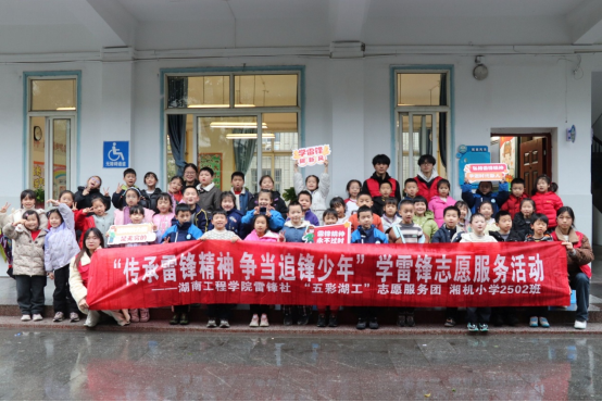 雷锋社联合“五彩湖工”志愿服务团,走进湘潭湘机小学2502班,开展“传承雷锋精神 争当追锋少年”学雷锋主题教育活动。
