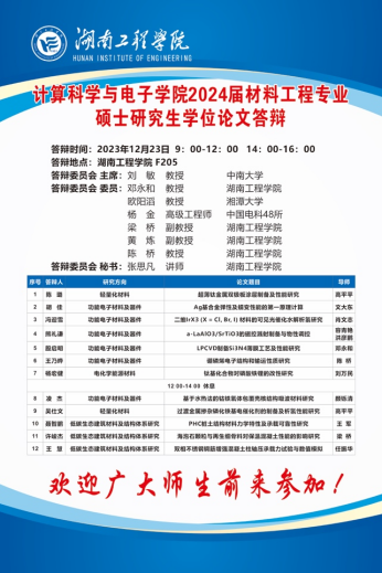 根据研究生培养方案,12月23日,麻豆原创 在F—205开展2021级材料工程专业研究生硕士学位论文答辩。论文答辩委员会由2名校外专家、1名企业工程师、材料工程-土木、材料工程-机械、材料工程-计算电子三个专业的4名校内专家、以及1名研究生秘书共同组成。